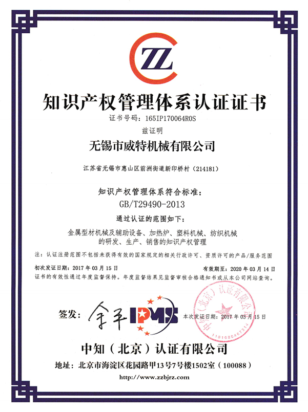知識(shí)產(chǎn)權(quán)管理體系認(rèn)證證書